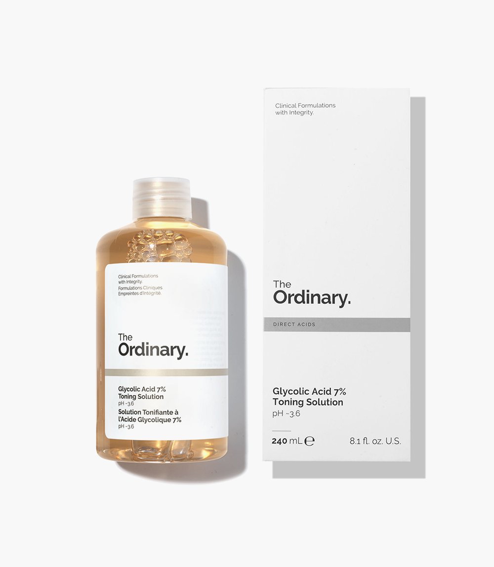 The Ordinary Glycolic 7% Toning Solution is free from silicone, alcohol and oil, and is also vegan and cruelty-free. It is not suitable for use on sensitive or compromised skin.