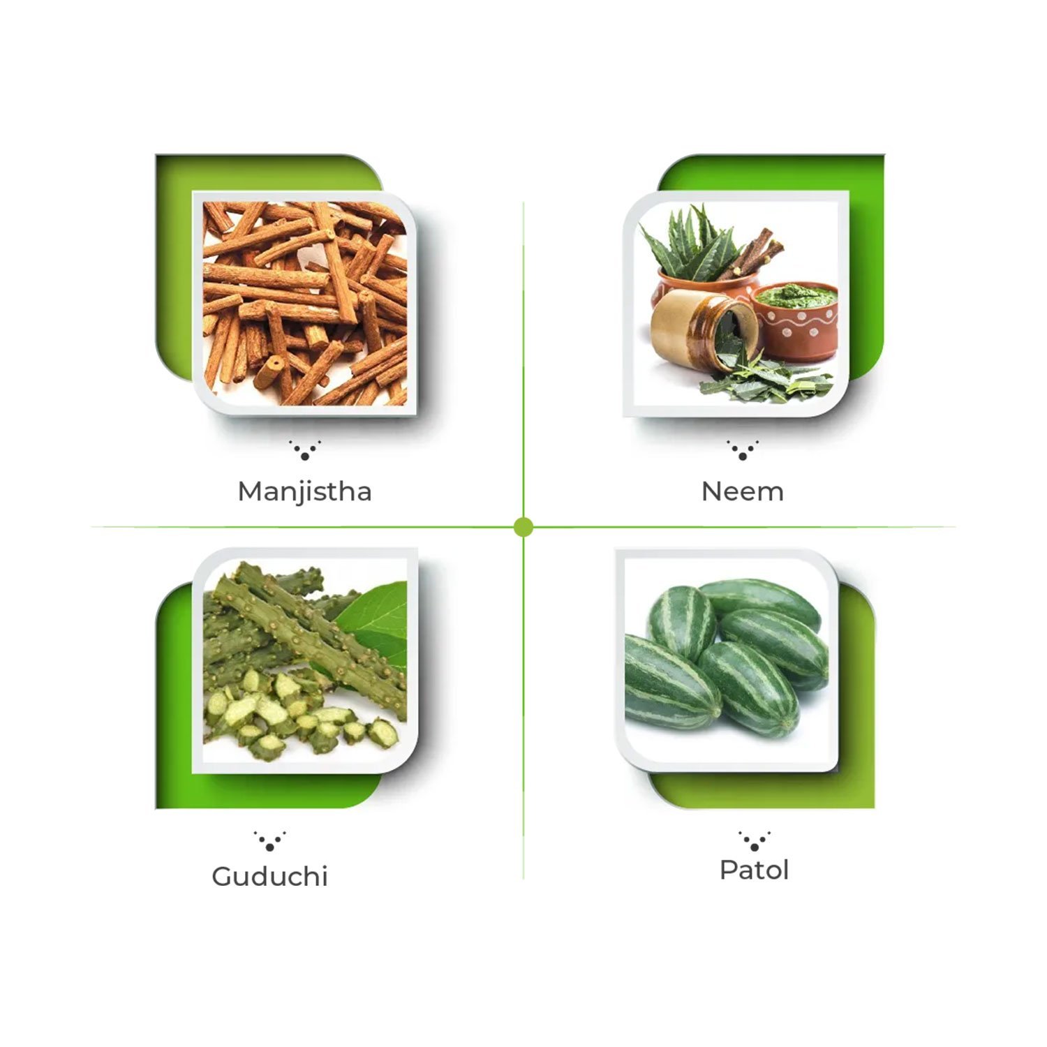 - Manjistha, neem bark, bawachi, kuntaj bark